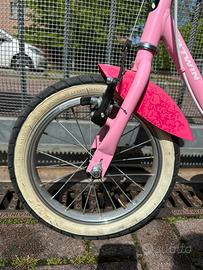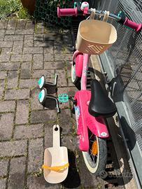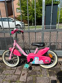 Bici decatlon per bimba con unicorni 14 pollici con pedali e ruotine comprese, regalo gli accessori porta bambolotto e porta oggetti anteriore Preferisco consegna a mano
