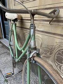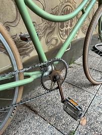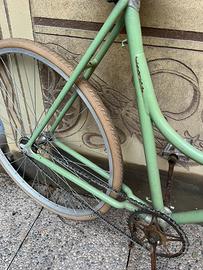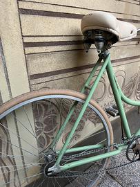 Bici da domna ruote 28, custom. Un solo freno anteriore, copertoni color panna, telaio verde salvia . Sella mmortizzata e comoda. Vernice da rivedere.