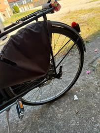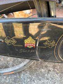 Bici fonna olimpia con freni a bacchetta. Datata ma perfettamente funzionante. Solo la ruota davanti è a terra. Nera