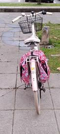 bici donna da passeggio, colore telaio crema con rifiniture rosa.