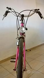 IN OTTIME CODIZIONI ROBUSTA FUNZIONANTE, MANUBRIO IN ALLUMINIO COLORE FUCSIA CAMBIO SHIMANO SIS 15 VELOCITA LUCE CON DINAMO