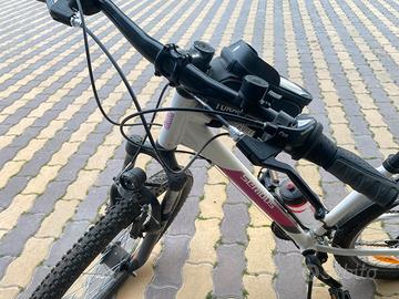 Bici donna taglia S, Mountain bike Serious Rockville da 27,5 pollici. Cambio GruppoTourney. Utilizzata pochissime volte. Telaio leggero in alluminio, design sportivo e confortevole. Sella italia donna gel flow. Incluso porta cellulare con borsa impermeabile e manopole ergonomiche. Luci anteriori e posteriori.
