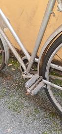 salve vendo bici vintage perfettamente funzionante, cerchi in lega di alluminio revisionati e registrati i raggi,guaine più fili freno nuovi, copertoni e camere d'aria nuovi,inoltre il manubrio è in Alluminio molto comodo da impugnare .