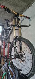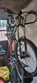 Bici downhill ammortizzatore centrale Fox, forcelle doppia piastra. Molti pezzi Argan coordinati.