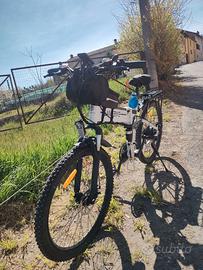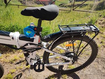 Mountain bike elettrica Samebike LO26 è realizzata in lega di alluminio ed è in grado di resistere fino ad un peso di 150 kg. Dotata di cambio Shimano, luce LED anteriore per le pedalate notturne e tre modalità differenti: manuale, pedalata assistita e solo elettrica. A bordo troviamo un motore da 350W in grado di offrire una velocità massima di 35 Km/h, fino ad una pendenza di 35°. Dotata di ruote da 26″, l’e-bike integra una batteria da 10.4 Ah / 48 V, per un’autonomia fino a 40 Km in modalità elettrica e 80 Km in versione pedalata assistita. in aggiunta ho intallato 2 borsette una porta telefono con visione una bagaliera, parafanghi e luce posteriore alimentata dalla batteria, gomme antiforatura per un totale di 180€ la vendo perchè non ho più la possibilità di usarla ha meno di 1300Km e ha la batteria da sostituire, su Amazon si trova nuova a 190€, posso fornire il Link, oppure si trova rigenerata con poco più di 100€