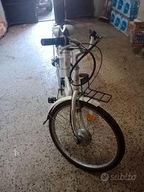 Vendo bici elettrica 250w bianca. Quando è carica fa i 20/25 kmh ma basta una centralina più potente per fargli fare di più,20 km di autonomia. Bici in perfette condizioni in tutti sensi,vendo per inutilizzo, insieme alla bici do ovviamente il caricatore,chiavi e chiavi di riserva.Prezzo trattabile.ATTENZIONE:DA CONSIDERARE CHE QUESTA BICI NUOVA COSTA 1000 EURO