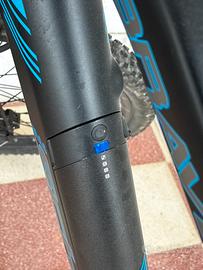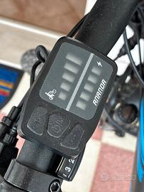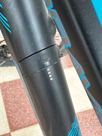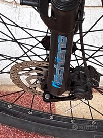 Vendo F.lli Schiano Braver, bici elettrica mountain bike da 27.5” per adulti, in condizioni eccellenti. Usata pochissimo e sempre custodita al coperto. Telaio sportivo in alluminio nero opaco con dettagli blu, dal design moderno e con batteria integrata e rimovibile.