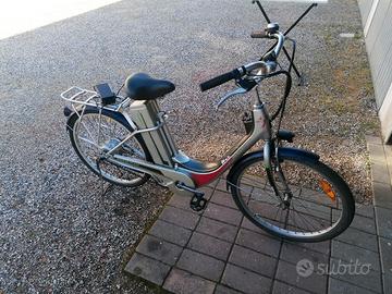 Bici Elettrica 24 pollici 36v funziona bene e pronta all'uso Freni ok, motore ok e molto fluido 1 copertoni dietro cambiato Catene e pignoni ok Va con Pedalata assistita Con tasto per 2 velocità la Batteria al lithio molto leggera(meno di 2kg) appena sostituita estraibile sellino ribaltabile batteria da 36volt Fa circa 20km Vendo a 250 euro compreso di carica batteria con ventola nuovo Si trova a gualdo di voghiera provincia di Ferrara No perditempo No offerte al ribasso Si può provare prima dell'acquisto Il primo che viene a ritirarla la prende. Solo consegna a mano oppure trasporto(20/25 euro) nella provincia di Ferrara dopo averla pagata