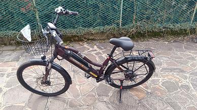 Vendo bici elettrica marca TAOCI con motore posteriore con 5 livelli di potenza. Funziona sia come bici a pedalata assistita che come Electric Bike senza pedalare dato che è provvista di acceleratore come uno scooter. Telaio in lega di alluminio. Non è presente il limitatore di velocità quindi arriva quasi a 40 Km/h. E' provvista di cambio Shimano a 7 rapporti. Ruote da 26" con pneumatici da montagna. Forcella anteriore ammortizzata. Freni a disco meccanici anteriori e posteriori. Batteria al litio rimovibile da 36v. Tempo di ricarica: circa 2-3 ore. Adatta a persone alte da 160 a 190 cm. uomo/donna Completa di caricabatteria originale e chiavi per la rimozione della batteria.