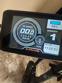 bici elettrica della marca i orange con acceleratore display a colori freni shimano appena cambiati inclusa di caricatore e luci anteriori e posteriori. Raggiunge massima velocità 35kmh