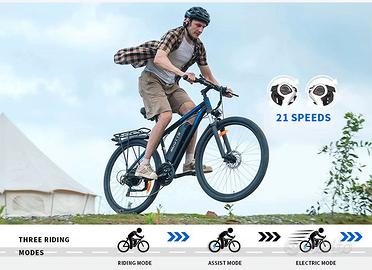 * Con il sistema di cambio SHIMANO a 21 velocità puoi trovare la modalità di guida perfetta per qualsiasi terreno, garantendo comfort e velocità ottimali durante tutto il viaggio.