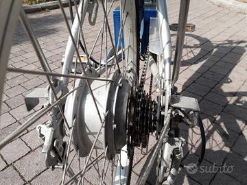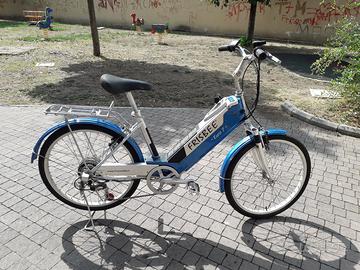 Bici elettrica a pedalata assistita Frisbee Euro 7 Ruote da 24” Motore Brushles 250W Batterie 36V Cambio manuale a 7 rapporti Completa di caricabatterie. La bici è perfettamente funzionante. Tutto come da foto