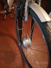 vendo per passaggio a E-Mtb bicicletta adriatica Cruise uomo telaio in alluminio con batteria centrale ( a differenza delle solite bici con batterie posteriori e motore posteriore questa ha i pesi ben distribuiti il che la rende veramente piacevole da guidare e facile da spostare), manubrio in alluminio comodo e largo manopole nuove, tre velocità di assistenza alla pedalata ; ruote alte da 29" con cerchi in alluminio alto profilo; motore anteriore , batteria litio sostituita 3 anni fa ancora di ottima durata, tenuta in maniera ottimale tutta la bicicletta sempre in garage chiuso non presenta ruggine o danneggiamenti ,cambio Shimano forcella anteriore ammortizzata sedile largo con molle e sistema ribaltabile per estrazione batteria; vendo completa di chiavi; trasformatore per ricaricare e borse laterali e cavalletto centrale.