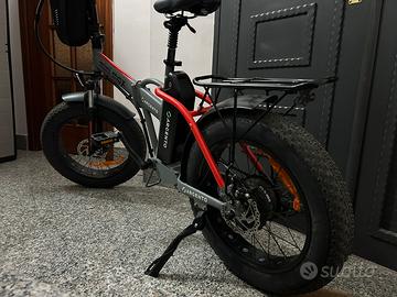 bici elettrica argento MiniMax anno 2024 completa di portapacchi borsa anteriore e posteriore piu seggiolino per bambini