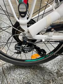 RUOTE 24"X 1,75 copertoni Vee Tire Speedbooster cerchio doppia camera ad alto profilo TELAIO alluminio idroformato FORCELLA acciaio rigida ATTACCO MANUBRIO alluminio SELLA DDK modello 226lq Memory Foam CANNOTTO alluminio GUARNITURA acciao PEDALI FRENI Promax v-brake alluminio CAMBIO Shimano TY21 6 velocità MOVIMENTO CENTRALE a cartuccia DISPLAY indicatore di carica sul manubrio con computer variaizone 3 velocità e funzione easy-walk 0-6 km/h LUCE ANT. E POST. a led con batterie incluse MOTORE E POTENZA BAFANG brushless 250W al mozzo posteriore VELOCITA' MAX 25 km/h BATTERIA Li-ion 36V-13Ah 468 Wh straibile PESO BATTERIA 3,5 kg TEMPO DI RICARICA 5-6 ore CARICA MINIMA 30-40 giorni AUTONOMIA 70 km circa in funzione del carico e delle condizioni della strada PESO 24 kg batteria inclusa PORTATA MAX 90 kg CESTINO Incluso Bicicletta nuova, mai usata Prezzo leggermente trattabile Per qualsiasi informazione chiamare al numero 3407451172