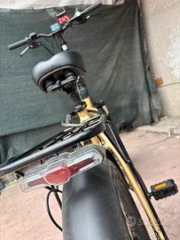 BIci elettrica ARORA 375 watt, 36 volt e 10ah, batteria integrata nel telaio, marcie shimano (7) con 5 modalità di velocità, con catenaccio a pin,sella ammortizzata,clacson e luci a pulsante,con fari a led anteriori e posteriori.