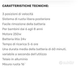 La bici é stata acquistata a maggio 25 usata poco…vendo per passaggio a piu grande bici come nuova .pagata €550 Batteria ricaricabile