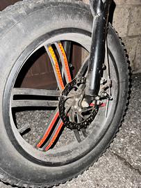 Bici elettrica con acceleratore ,freni a disco, con 7 marce e faro. Pultroppo la batteria non funziona bene , non so quale problema sia di preciso però forse è da cambiare. Display con 5 potenze per la velocità con anche clacson. Copertoni messi in buone condizioni, freni cambiati non molto tempo fa, il cambio da un pò di problemi ma non è niente di grave e la catena è un pò arruginita. Si può piegare per semplificare lo spostamento in macchina. PREZZO TRATTABILE