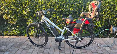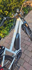 Bici elettrica Cannondale Kinneto Pedalata assisitita a 3 livelli Prnumatici, camere d'aria, sella e manubrio nuovi. Completa di portapacchi anteriore e posteriore optional. Forcella ammortizzata, freni a disco. Completamente revisionata. Seggiolino rimovibile. Durata batteria ottima. Si vende per inutilizzo.