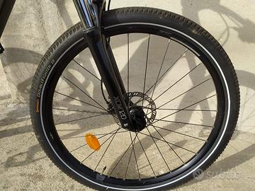 Bici MTB Rockraider st 500 pedalata assistita. Taglia M (vendo per motivo di taglia troppo grande) ho montato gomme da strada Continetal, le originali Michelin sono comprese pure. Km percorsi 1730 circa in totale. Sul sito decatlon costa €1.350,00 ricondizionata.