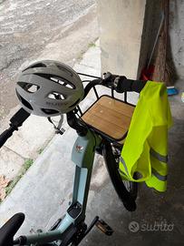 Vendo bicicletta elettrica a pedalata assistita, per causa inutilizzo, acquistata pochi mesi fa, quasi pari al nuovo. Ideale per la città e per tragitti quotidiani, molto comoda e stabile. Data di batteria integrata, ricaricabile, nel telaio, cambio con 7 marce, freni a disco e telaio ribassato per salire e scendere facilmente. Accessori inclusi: cestino anteriore, portapacchi posteriore, cavalletto, parafanghi, sella comfort. La bici è sempre stata usata pochissimo e tenuta al coperto. In regalo casco e giubbotto catarifrangente. Chiavi incluse. Ritiro a mano in zona, per info contattare in privato.