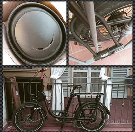 Bici elettrica batteria estraibile. Mezzo usato, ma revisionato e in ottime condizioni. Batteria dura circa 60km Pedalata assistita, ma con accelleratore per la prima spinta (fino a 5km/h) Ruota Fat Bike incluso - caricabatterie - sacchetto porta batteria ignifugo - due catene in ferro - porta cellulare - casco - copri display in PVC