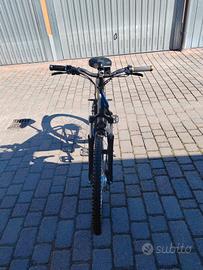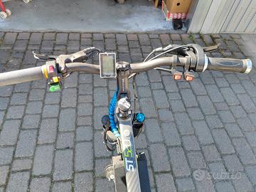 MTB Telaio 26 rockrider st 520, doppio motore, centralina e batteria 36 volt. Forcella idraulica regolabile, freni idraulici a disco, illuminazione completa. Autonomia 25 km senza pedalare in doppio motore. Ritiro a mano, prezzo non trattabile. Perfettamente funzionante, completa di caricatore.