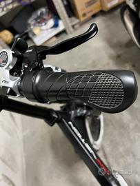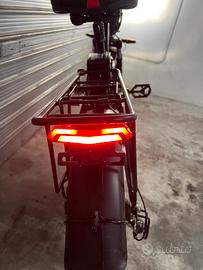 Bici che ha pochi mesi di utilizzo,non presenta nessun ammaccatura, pasticche e disco anteriori e posteriori cambiati la settimana scorsa, leve freni, pedali,cambio marce e copertoni cambiati recentemente, batteria in ottimo stato, 50 km di autonomia. Presenta anche l'acceleratore disattivabile da schermino così come la velocità .Velocità massima 60km/h. Frecce e faro led anteriore e posteriore con sensore freni funzionante. Presenta 5 velocità diverse. Km totali 230 (la bici viene usata ancora). Si puo chiudere e trasportare in auto.Doppia chiave. Caricabatterie compreso.