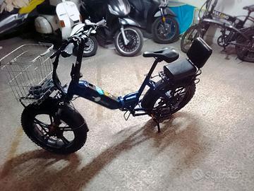 Bici elettrica E-Inglobal FT-90, condizioni perfette, batteria perfetta, acquistata a Dicembre 2024 a € 1.240. La vendo per passaggio a bici cargo. Telaio in lega Batteria 36 V 10 AH Motore 250 W RKS Peso 27 Kg Forcella anteriore bloccata in lega Velocità massima 25 km/h Autonomia 45/60 km Cerchi 20″ x 4.0 Peso 27 Kg Unici elementi da riparare: faretto anteriore e clacson. Cavalletto funzionante ma da rettificare.