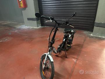 completano le dotazioni di sicurezza. Per quanto riguarda la spinta: labatteria al litio da 36V-8Ah pesa 2.8 kg e si carica in un tempo di 4/6 ore. Il motore è un classico250Wcon circa 50 km di autonomia. Le dimensioniruote 20”x1,75: Il peso totale è di 23 Kg, con capacità di carico 100 Kg.