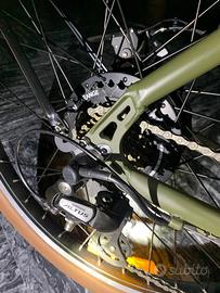 Vendo come da foto, bici elettrica dal design particolare, nuova! Dotata di un motore brushless posteriore da 250W e di batteria Sanik al Litio da 13Ah è possibile coprire fino a 60km di tragitto, senza sforzo, soprattutto in salita. Cambio shimano, freni a disco, luci, sellino in pelle e manubri in pelle. Tutto full optional in perfetto stato. Da vedere