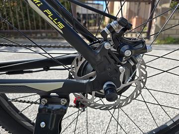 NO PERDITEMPO Motore e Velocità: Motore posteriore da 250W (con picco fino a 400W/50OW) per una velocità massima di 25 km/h, nel rispetto delle normative stradali. Batteria e Autonomia: Batteria da 12.5Ah integrata (rimovibile) che garantisce un'autonomia massima fino a 100 km in modalità Eco/assistita. Cambio e Freni: Sistema Shimano a 21 rapporti (3 anteriori, 7 posteriori) e freni a disco meccanici da 160mm anteriori e posteriori. Struttura e Comfort: Telaio in lega di alluminio AL6061, ruote da 27.5" con pneumatici CST, sospensione idraulica anteriore con 100mm di escursione e funzione di bloccaggio. • Smart Features: Display per la gestione dei livelli di assistenza (5 livelli), supporto app per controllare le funzioni e sistema di "pedalata assistita" con modalità camminata a 6 km/h.