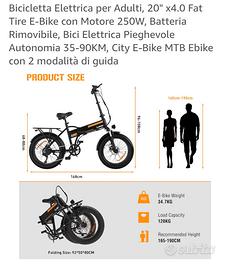 Bici Pedalata Assistita 25 km/h , pochissimi Km, batteria come nuova,con tutti gli accessori, più seggiolino e pedaline, 20" x4.0 Fat Tire E-Bike con Motore 250W, Batteria Rimovibile, Bici Elettrica Pieghevole Autonomia 35-90KM, City E-Bike MTB Ebike con 2 modalità di guida, la bici si può provare e vedere a Cagliari consegna a mano.