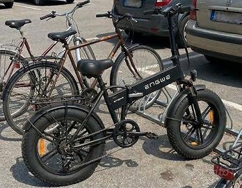 Splendida Engwe EP-2 Pro, la fat bike elettrica pieghevole più amata per potenza e versatilità. La bici è in condizioni eccellenti, pari al nuovo, tenuta maniacalmente sempre in ambiente riparato (garage). SPECIFICHE TECNICHE: Motore: 750W (Potenza ai vertici della categoria, ottima spinta in salita). Batteria: 48V 13Ah (Fino a 80-100km di autonomia in assistita). Autonomia: fino a 120km in modalità assistita Ruote: Fat 20x4.0 (Massimo comfort su buche, pavé e sterrato). Cambio: Shimano 7 velocità. Accessori: Display LCD multifunzione, freni a disco, luci LED e portapacchi rinforzato. Sospensioni: Forcella anteriore con sospensione regolabile 📐 DIMENSIONI E PRATICITÀ: La bici è completamente pieghevole (telaio, manubrio e pedali) per un trasporto facilissimo: Aperta: Lunghezza 167 cm / Altezza manubrio 118-130 cm. Piegata: Solo 99 x 55 x 76 cm (entra comodamente nel bagagliaio di una city car). Peso: Circa 30kg (molto stabile e robusta). STATO DEL MEZZO: La bici è esteticamente e meccanicamente perfetta, senza un graffio. È pronta per essere usata. Incluso caricabatterie originale. Ritiro a mano a Montecchio Maggiore / Vicenza