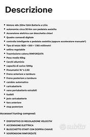 Vendo Bici Elettrica Come Nuova Con Pedalata Assistita , Acquistata Per i Miei Figli Ma Mai Utilizzata, Solamente Provata Dopo Averla Acquistata e Poi Rimasta Ferma, Bici 250 Watt 48 Volt Omologata Per Chi È Maggiorenne Senza Bisogno Ne Di Casco e Ne Assicurazione. Chiamare Se Si è Veramente interessati Veramente interessati a Umberto Tel 3384902351.