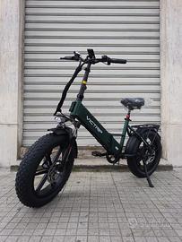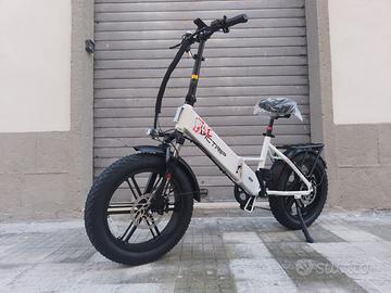 Bici elettrica FAT BIKE pieghevole VICTRIP T5S 48v 15ah 750W montaggio, acceleratore con chiave e sblocco velocità + 50 euro Il motore sinusoidale brushless ad alta efficienza del T5S eroga una coppia di 85Nm , affrontando senza sforzo pendenze di 30-35° . La sua batteria al litio nascosta LG da 48V e 15Ah offre un’autonomia fino a 80km per carica, ideale per i lunghi tragitti. Progettato per stabilità e comfort , il telaio a media campata, gli pneumatici larghi e le sospensioni anteriori garantiscono prestazioni fluide su qualsiasi terreno. Che sia in città o fuoristrada, offre potenza, stile e una guida esaltante . Il motore brushless da 48V 750W ha prestazioni elevate, bassa rumorosità e basso consumo. Il suo valore di picco massimo è 850-900W. È perfettamente combinato con il controller per ridurre l’attrito e far funzionare la bicicletta elettrica in modo più fluido e continuare a funzionare in modo più efficiente. Batteria ad alte prestazioni con tecnologia avanzata di iniezione di colla, che garantisce maggiore durata e protezione da umidità e vibrazioni, assicurando potenza duratura, maggiore sicurezza e un’esperienza di guida affidabile in diverse condizioni. Display LCD a colori multifunzionale Il nostro display LCD retroilluminato può visualizzare dati e parametri in tempo reale e i dati visualizzati sopra possono essere visti in qualsiasi momento. Scheda tecnica: TELAIO in alluminio, pieghevole tramite maniglia Deluxe MOTORE posteriore, LIMITATO 250WATT 48V, sbloccabile a 750W COPPIA 85NM BATTERIA LG 48V, 15Ah – 720W/H RUOTE 20” X 4.0” marca CST FRENO a disco IDRAULICO anteriore e posteriore disco da 180mm CAMBIO SHIMANO TOURNEY 7 rapporti Display LCD a colori multifunzionale, con porta di ricarica USB e indicatore di direzione anteriore e posteriore SELLA CONFORT AUTONOMIA da 40 a 80 km (questo dato dipende da: livello di assistenza