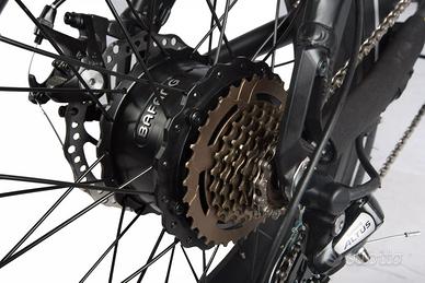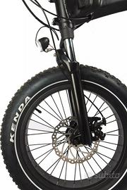 Bici pieghevole elettrica con ruote FAT 20 x 4.0 ,biammortizzata, batteria al litio da 11,6Ah nascosta nel telaio,motore 250 watt,cambio Shimano 7 rapporti,freni a disco