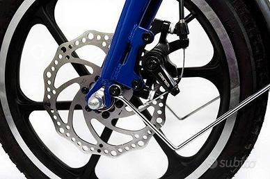 Freni a disco: offre infatti freni a disco anteriori e posteriori per garantire la massima sicurezza in tutte le circostanze. Leggera: bicicletta elettrica a pedalata assistita più leggera in assoluto. Non è facile infatti trovare delle bici che pesino solo 15 kg. Telaio in alluminio: la sua struttura, totalmente in alluminio, è disponibile in diversi colori. Pieghevole: Il telaio pieghevole consente di richiudere la bicicletta riducendo al minimo gli spazi occupati e rendendola così la bicicletta elettrica ideale non solo per il trasporto in auto ma anche per spostamenti aerei. Ruote da 16″: Le ruote hanno un battistrada di 16” che è in grado di offrire grande stabilità soprattutto nei percorsi urbani.
