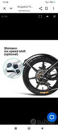 Fido ds2 16' con cambio Shimano 6 rapporti ,portapacchi ,specchietto retrovisore ,maniglie freni ergonomiche,set chiavi manutenzione,pasticche di ricambio freni a disco , alimentatore di ricarica.Peso 19,5kg