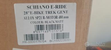 Bici elettrica SCHIANO E-RIDE da passeggio bellissima, molto elegante, colore nero opaco con inserti in nero lucido, nuova mai usata sempre in scatola, perfetta, misura L ruote 28" perfette per altezze che vanno dall'1,60 fino a 1,80 e forse anche oltre. Con fari, ripeto ancora nella sia scatola. Su internet in vendita a 840 €, la vendo a 600 euro. Provincia di Firenze ma posso consegnare anche in altre zone. voi proponete.