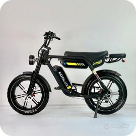 Bici Elettrica KOOLUX X9, ruote 20x4, batteria 48V 15.6Ah autonomia 60-80km (guida e percorso ottimale), motore 750W trazione posteriore, sospensione anteriore a forcella e posteriore a molla, doppio freno a disco, attivazione da display, illuminazione, cambio Shimano 7 rapporti, velocità 25 (45 sbloccat1), non pieghevole, urbana e fuoristrada. Perfetta, praticamente nuova, usata solo per una recensione ( video su YouTube https://youtu.be/VVXC5By_s-E ). Come in foto ma con 1 batteria, non 2.