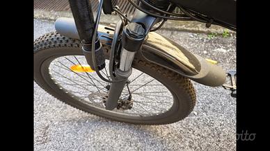Pagata quasi 1000 per avere un mezzo dopo il ritiro della patente, vendo solo dopo 3 mesi. Praticamente nuova. La bici arriva fino a 40 km orari circa senza utilizzare i pedali. La sua autonomia è circa 60km con una carica andando però abbastanza spediti. lascio specifiche tecniche Telaio: telaio da montagna con sospensioni in lega di alluminio da 26" Forcella anteriore: forcella ammortizzata con bloccaggio Batteria: batteria al litio 48V12.5AH (LG) Motore: motore brushless ad alta velocità da 750 W Deragliatore: SHIMANO 21 velocità Misuratore: Misuratore centrale LCD a colori con USB Modello di guida: elettrico e PAS Ammortizzatore: doppio ammortizzatore invertito Michelson a quattro bracci da 750 libbre Freno: freno a disco meccanico Tubo sella: tubo sella in lega di alluminio Pneumatici: pneumatici CST da 26"*2.235" Cerchio: Cerchio a raggi Piastra di fango: piastra di fango in PVC Telaio: telaio da montagna con sospensioni in lega di alluminio da 26" Forcella anteriore: forcella ammortizzata con bloccaggio Batteria: batteria al litio 48V14AH Motore: motore brushless ad alta velocità da 900 W Deragliatore: SHIMANO 21 velocità Misuratore: Misuratore centrale LCD a colori con USB Modello di guida: elettrico e PAS Ammortizzatore: doppio ammortizzatore invertito Michelson a quattro bracci da 750 libbre Freno: freno a disco idraulico Tubo sella: tubo sella in lega di alluminio Pneumatici: pneumatici CST da 26"*2.235" Cerchio: Cerchio a raggi Piastra di fango: piastra di fango in PVC