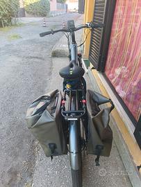 Cedo per motivi di spazio bicicletta elettrica della Mace Wheel. Ottime condizioni. Fatti poco più di 2000 kilometri ( la batteria arriva fino a 50000 kilometri ). Si attiva anche senza pedalare perché ha un comodissimo acceleratore sulla manopola destra. Cambio performante. Copertoni nuovi cambiati da poco super resistenti anti foraggio, freni nuovi. Molto robusta e affidabile anche ad alte velocità. Sono incluse le due sacche Decathlon ( valore 80 euro ). Pagata 1400 euro sul sito ufficiale ora nuova sta a 1.100. Ulteriore sconto per trattativa veloce . No SMS no anonimi, si a Wastapp e a chiamate dirette.
