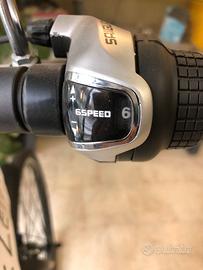 Vendo per imminente liquidità, bici elettrica con pedalata assistita con due specchietti, 6 marce al cambio, 3 marce elettriche, sellino soffice, pompetta da agganciare al telaio e chiavi per togliere la batteria.