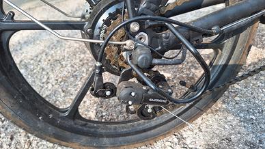 cambio della shimano , biammortizzata , molto utile su questo tipo di biciclette.