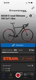 Bici da corsa elettrica Montana Vektor E-Scud Tg. 52 Ebike da corsa Comprenso Range extender! Sistema Ebikemotion: motore da 40 Nm nel mozzo della ruota posteriore, batteria da 248 Wh+ Range extender da 208Wh Taglia 52 Percorsi 32062km Frame Monoscocca carbon Fork Monoscocca carbon Wheels Alluminio Crankset Shimano 105 / 50-34T Rear Derailleur Shimano 105 11v Cassette/Freewheel Shimano 11v 11-34T Brakes Shimano 105 Hydraulic Stem Deda 100mm Handlebar Deda Zero 420mm