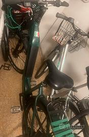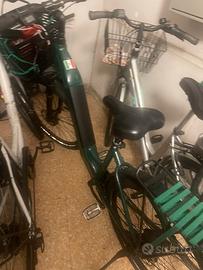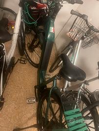 Bici elettrica myland personalizzata con cestino rete e vari accessori colore verde km percorsi meno di 6000 batteria pari al nuovo