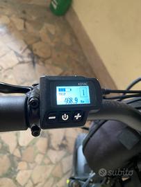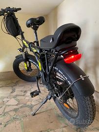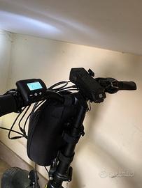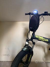 Vendo bicicletta elettrica italiana Atala 750watt, pari al nuovo, con soli 470km come in foto, completa di accessori, marsupio, catena, seggiolino e poggiapiedi posteriore, porta cellulare con carica batteria integrato, doppio faro, pieghevole.