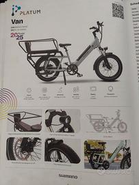 A TITOLO DI NEGOZIO vendo bici elettrica stile cargo nuova Marca PLATUM modello VAN 2 ANNI DI GARANZIA!!! Nella seconda e terza foto trovate tutte le caratteristiche Alcune di queste sono: - batteria estraibile 48V - motore posteriore 250W - freni idraulici - cambio Shimano - forcella ammortizzata - autonomia 80km - telaio alluminio Possibilità di mettere la pedana in dotazione al posto dei cuscini e supporto per seggiolino da bambini sempre in dotazione. POSSIBILITÀ DI SPEDIZIONE IN TUTTA ITALIA E SPEDIZIONE RINTRACCIABILE FATTA TRAMITE PARTITA IVA DAL MIO NEGOZIO Disponibile presso la mia azienda Cicli e Moto Menichini in Via Tosco Romagnola 550 a Cascina (PI)