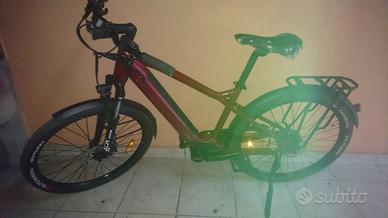 Moustache Samedi Xroad2 27 trekking. Meno di 2000 km all'attivo, tenuta ottimamente. Batteria in ottimo stato, autonomia di circa 120 km in modalità eco. La sella in foto e il supporto porta borsa al manubrio verranno tolti. La sella originale è quella nella prima foto, molto comoda. Formula visto e piaciuto. Solo consegna a mano. Caratteritche: - Telaio: Alluminio 6061 T4-T6, Idroformato, Misura M, Passaggio cavi interno - Motore: Bosch, Performance Line, 35/65 Nm, 25 km/h - Display: Bosch Purion - Batteria: Bosch, PowerTube 500Wh - Caricabatterie: Bosch, 4Ah - Forcella: Suntour, XCM ATB, 80mm di escursione - Cambio: Shimano, Altus, RD-M2000-SGS, 9v - Comando cambio: Shimano, Altus, Rapidfire Plus - Pacco pignoni: Shimano, CS-HG201-9, 11-36D - Catena: KMC, X9, 9v - Corona: Samox, Alluminio, 40D, con paracatena - Pedivelle: Moustache, Alluminio, 170mm - Freni: Shimano, MT200, Idraulico - Dischi: 180mm / 160mm - Copertoni: Hutchinson, Python, 27.5x2.10 - Cerchi: Moustache, Alluminio, 32H - Mozzi : Shimano, 9mm, Sgancio rapido - Manubrio: Moustache, Ergonomico, Alluminio, 680mm, 25° backsweep - Attacco manubrio: Moustache, Alluminio, 90mm, Regolabile - Sella: Selle Royal, Wave, Ergonomica - Reggisella: Moustache, Alluminio, 31.6mm, 350mm - Fanale anteriore: AXA, Blueline, 30 lux, alimentato dalla batteria principale - Fanale posteriore: Spanninga, Presto2Guard, alimentato dalla batteria principale - Portapacchi: Moustache, Alluminio, QL3 low-rider, Compatibile con borsa/accessori MIK - Parafanghi: Moustache, Alluminio